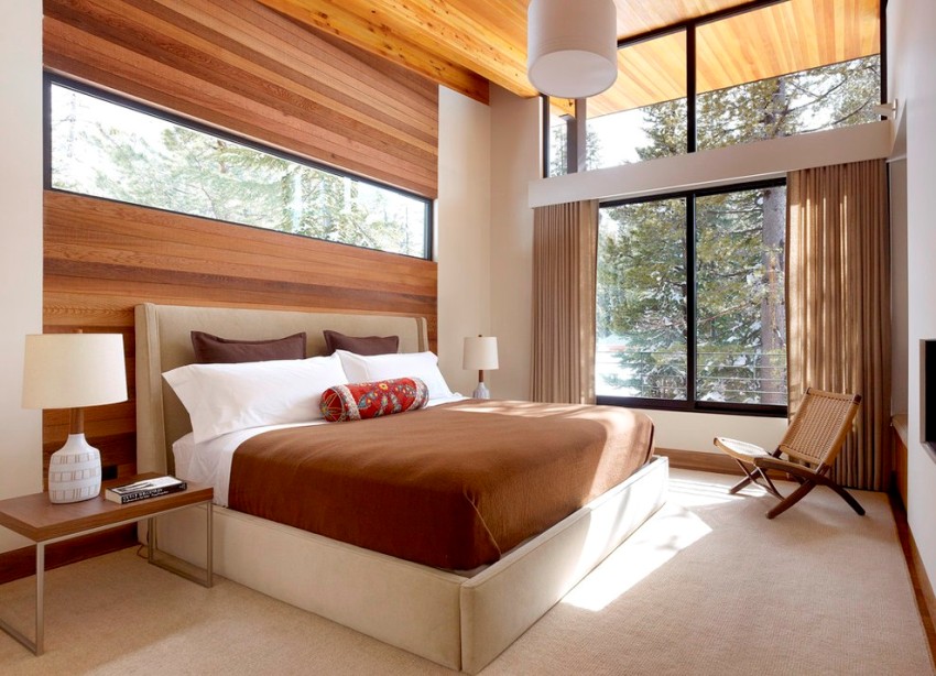 Вместе с выбором стиля и цветовой гаммы стоит запланировать отделку спальни. Если потолки высокие, то представляется прекрасная возможность использовать подвесные потолки и интересные варианты подсветки.