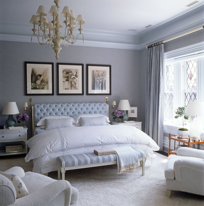 Оформление светлой спальни обычно происходит с помощью оттенков, принадлежащих пастельной цветовой гамме.
