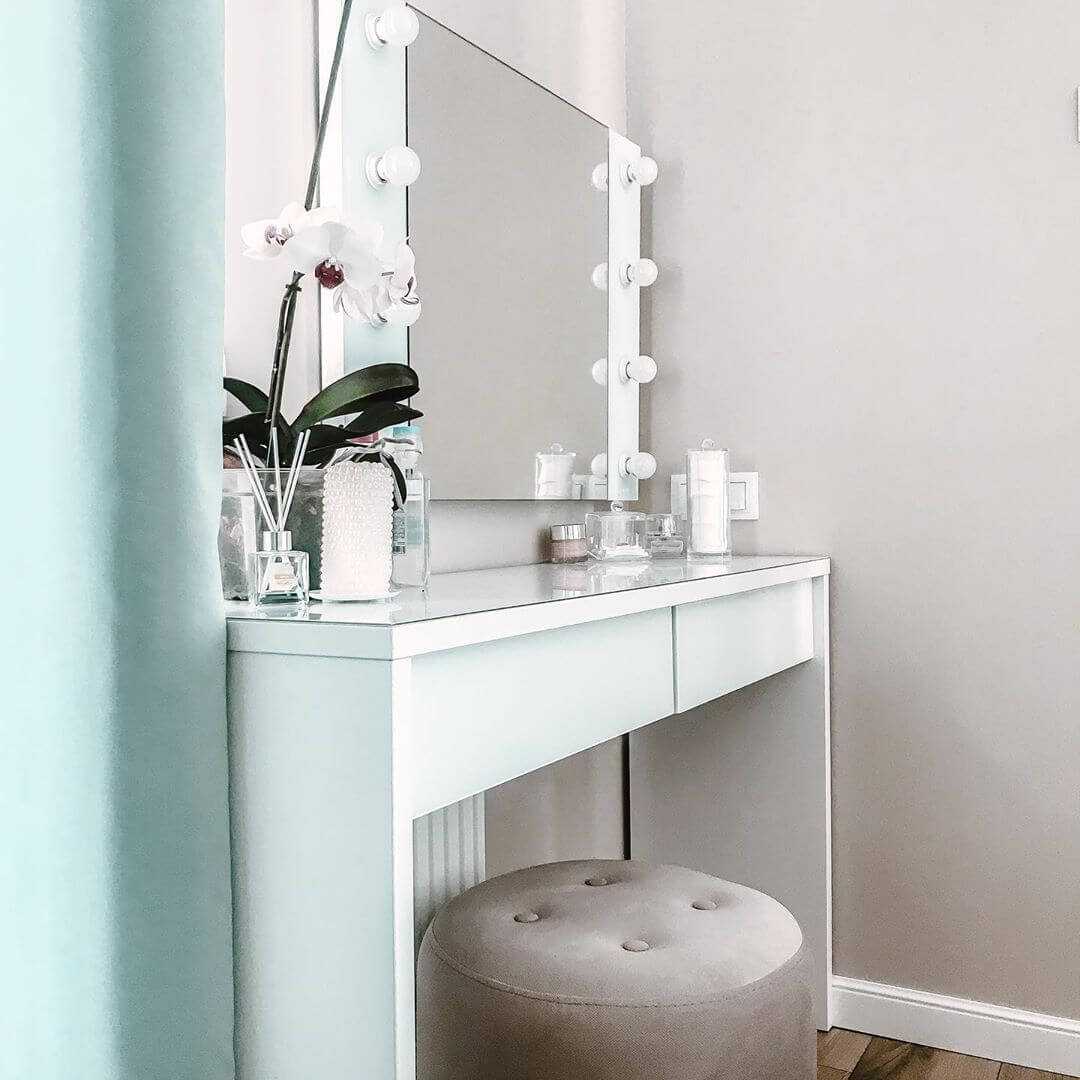 Не стоит выбирать слишком громоздкое трюмо. Оно должно вмещать в себя все самое необходимое. Кстати, если не хватает шкафов, его легко можно заменить на небольшой комод и установить на нем зеркало.