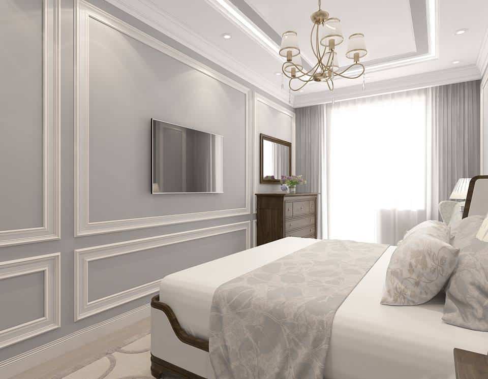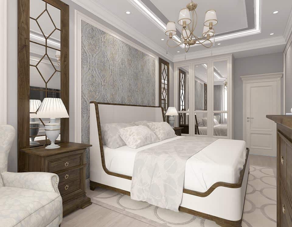 Если вас интересует статусный дизайн спальни 2023, то обратите внимание на оформление в стиле «Неоклассика». Такой вариант предполагает создание классического интерьера с использованием современных материалов