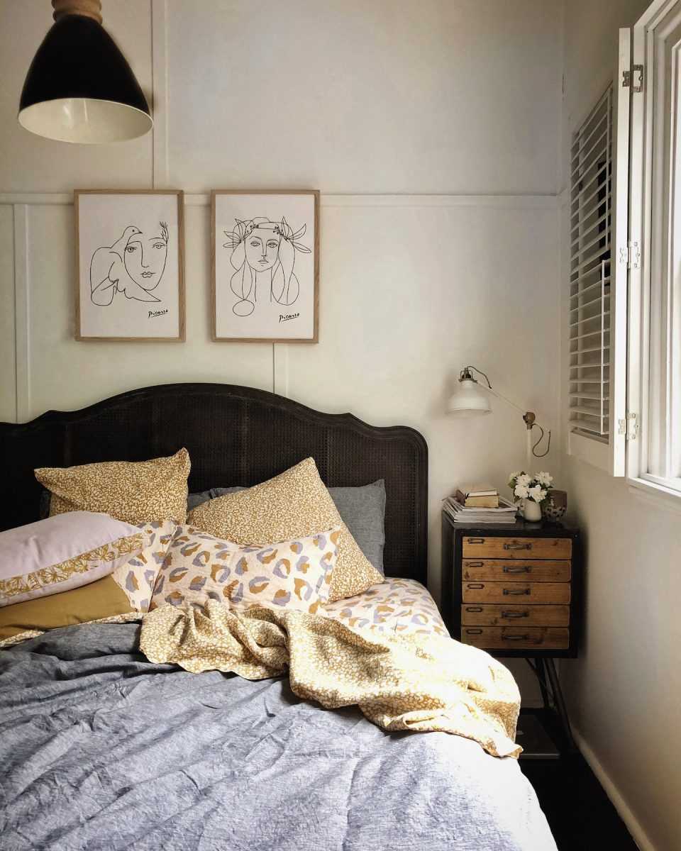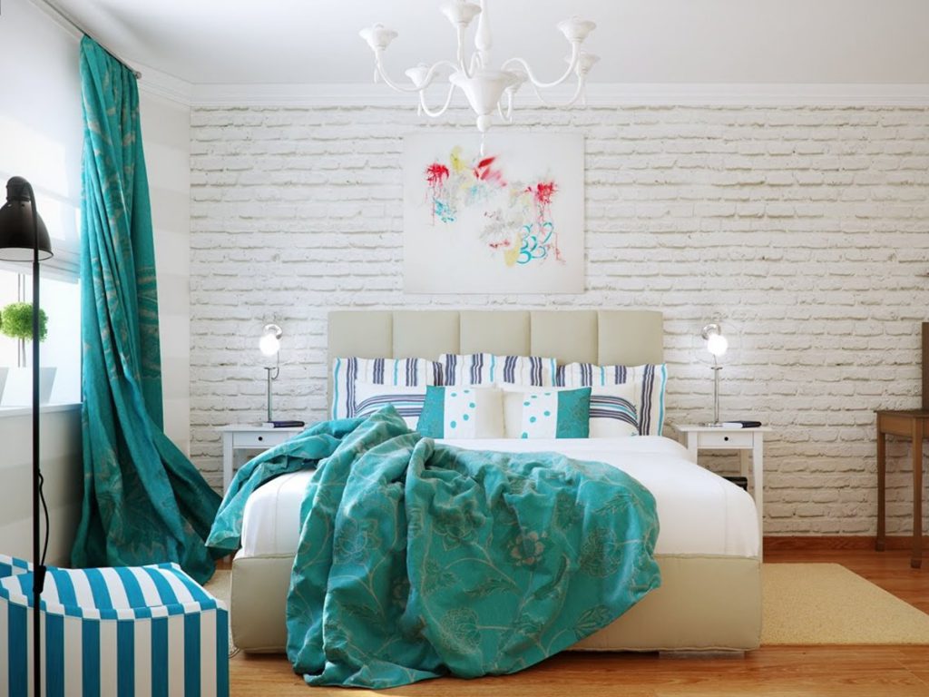 Умеренное добавление контрастных цветов поможет выгодно обыграть маленькую площадь спальной комнаты.