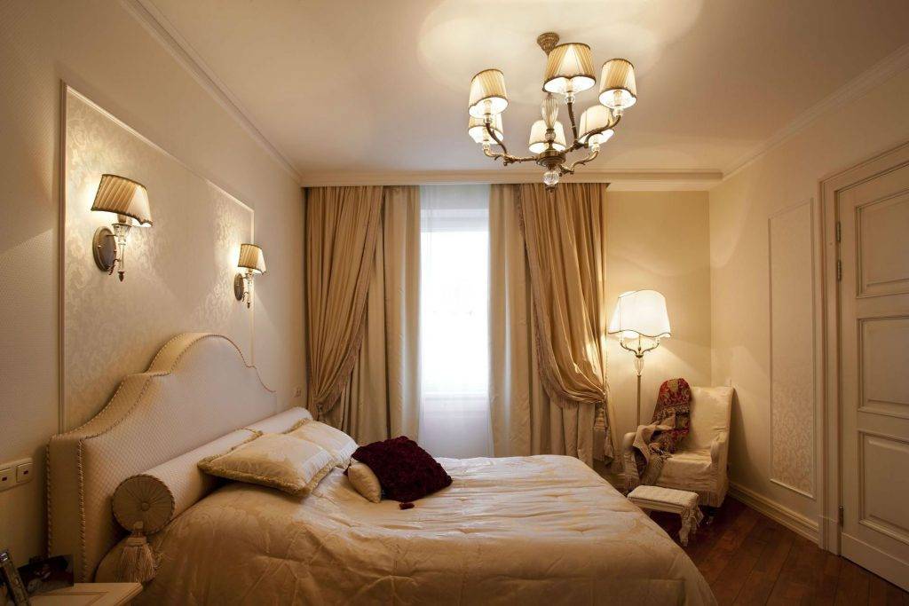 Настенные бра около кровати, небольшие светильники на столе и других плоскостях придадут освещению мягкости и будут рассеивать свет.