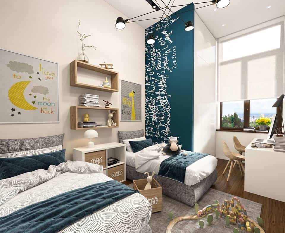 Для более строгого дизайна подойдут темные шторы, ламинат в качестве покрытия пола, обои в холодной гамме или с изображением кирпичной кладки — такие элементы добавляют сдержанности в стиль.