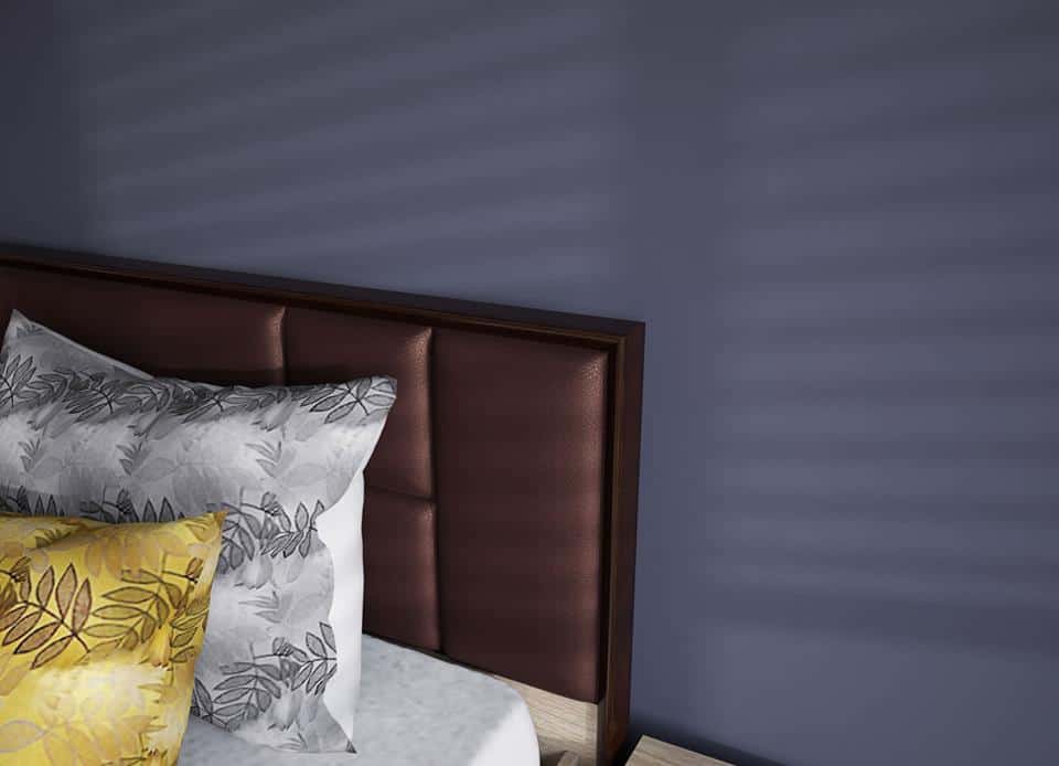 Любая тёмная поверхность с текстурой и подсветка по ней = шикарный и современный внешний вид. Это может быть тёмное дерево, бетон или его имитация с помощью декоративной штукатурки, декоративный камень, бруски, крашенные гипсовые панели — всё что угодно. Подсветка вдоль такой поверхности проявляет глубину материала и смотрится шикарно. А т.к. в спальне мы часто находимся при приглушенном свете, наслаждаться этим сможем часто.