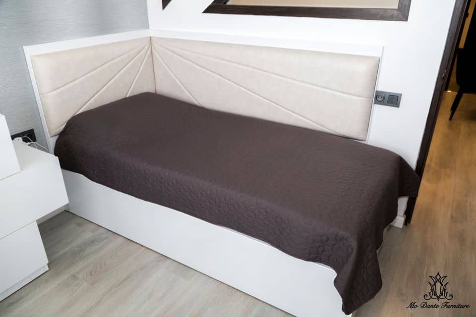 Угловая мебель для малогабаритной спальни Источник homeli.ru Сразу отметьте, что заставлять каждый свободный угол комодом или тумбочкой крайне нежелательно. Если очень хочется поставить некоторые предметы мебели, то стоит выбирать максимально функциональные варианты. Таким образом удастся получить хорошо сформированный интерьер спальни в 8 кв.м. В маленькой комнате должно быть всего три предмета мебели: