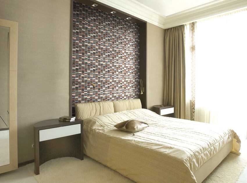 Если было решено использовать в отделке именно их, то следует помнить, что весь интерьер спальни должен сочетаться с акцентной стеной. Проще всего этого достичь текстильным оформлением кровати и окон.