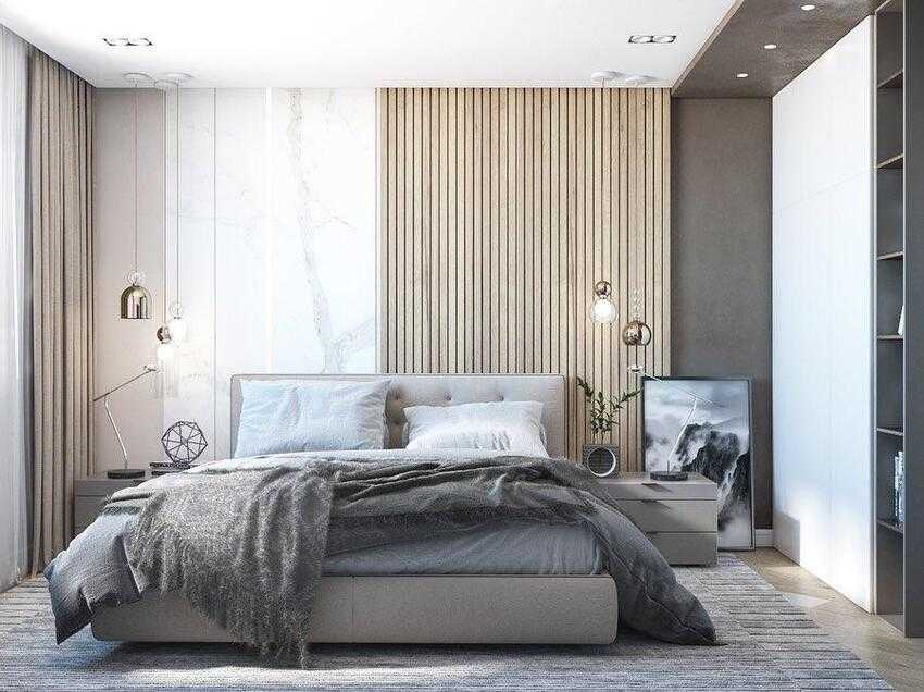 В стильных и функциональных современных спальнях применим любой дизайн, модный в 2023 г. Рекомендуется ориентироваться на фото готовых проектов и учитывать советы опытных дизайнеров: