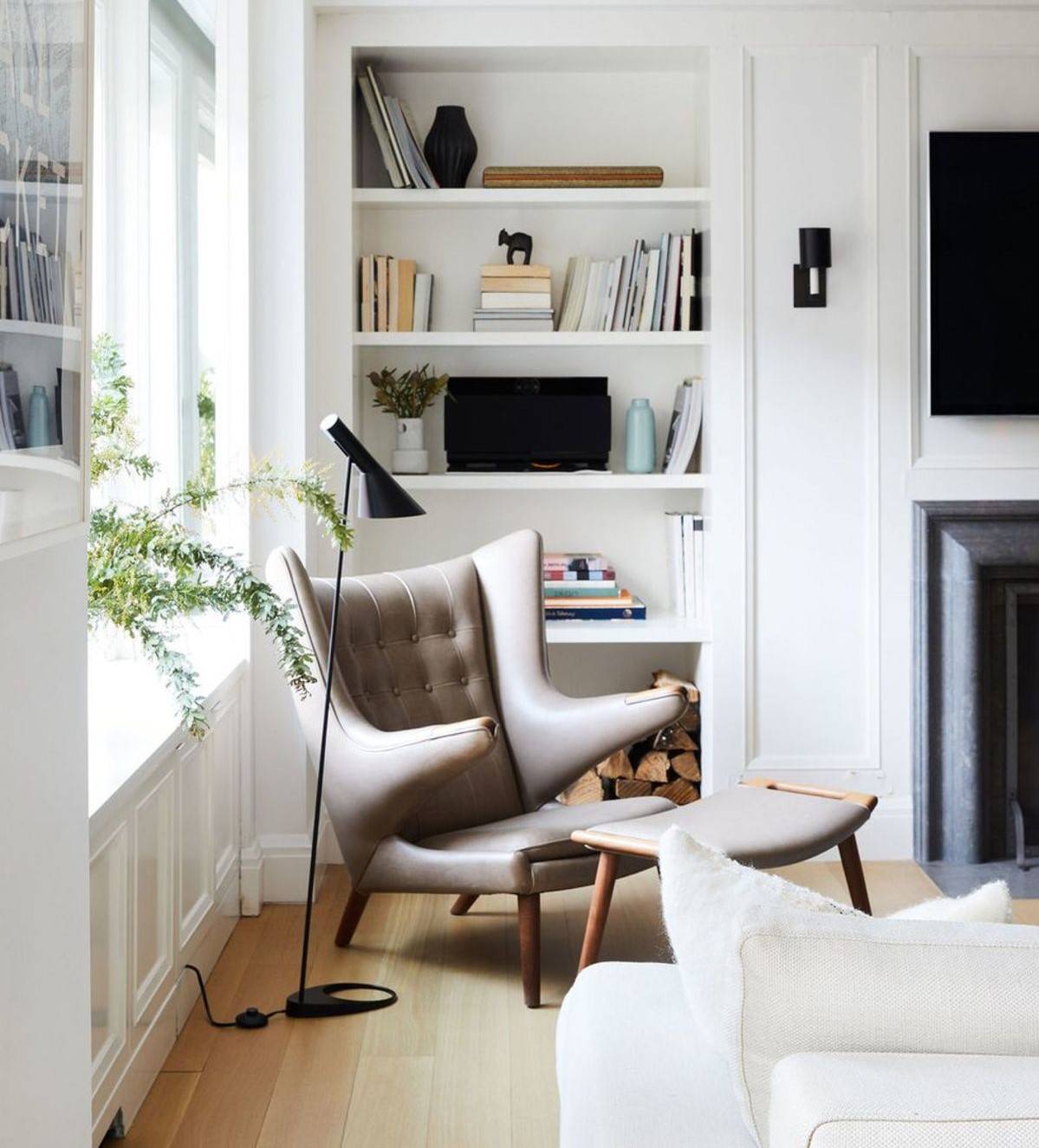 для чтения книг, вязания или легкого вечернего чаепития установите небольшой столик с торшером и пару стульев;