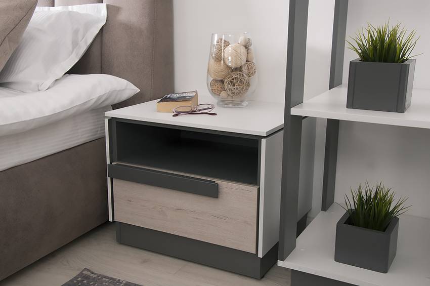 Прикроватные тумбы используют как место для будильника, книг, журналов, бижутерии или просто для стакана воды на ночь.