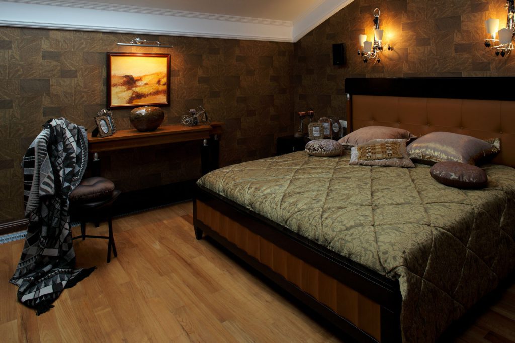 Темная спальня идеально подходит для отдыха. Это связано с тем, что уровень природного освещения здесь несколько ниже. В результате человек быстро расслабляется и засыпает. Также минимальное освещение позволяет создать романтическую обстановку в спальне, что является не менее важным.