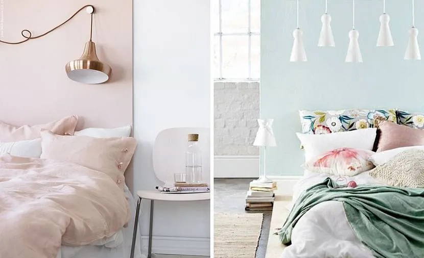 Достаточно использовать несколько небольших розовых акцентов, чтобы преобразить спальню. Это сочетание, пожалуй, одно из самых благоприятных для спальни.