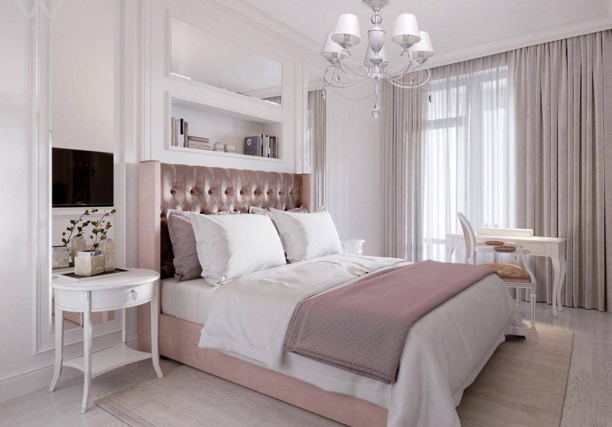 Классический стиль никогда не утратит свою популярность. Не лишним он будет и в спальне в светлых тонах. Направлений при этом может быть много, начиная от роскошного барокко и заканчивая более простым классицизмом.