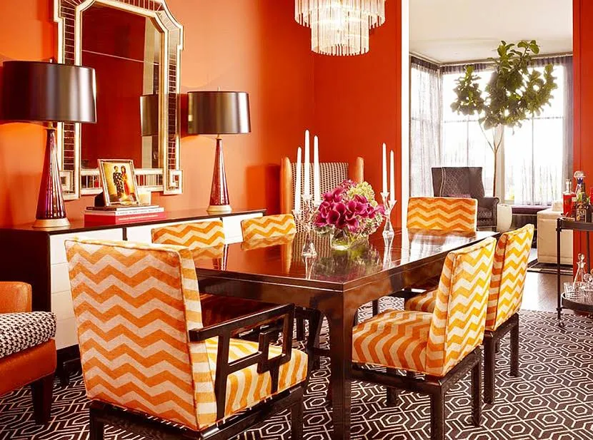 Яркий терракотовый цвет в дизайне столовой в стиле модернИсточник dizainvfoto.ru
