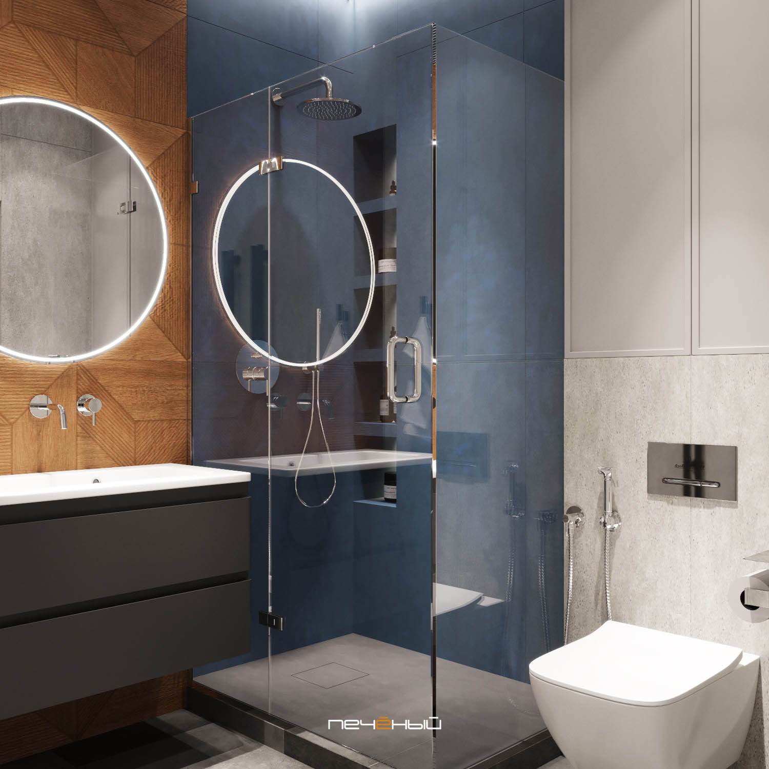 Душевая кабина в стиле модерн в совмещенной ванной комнате