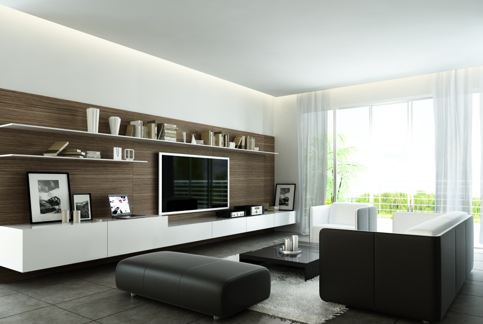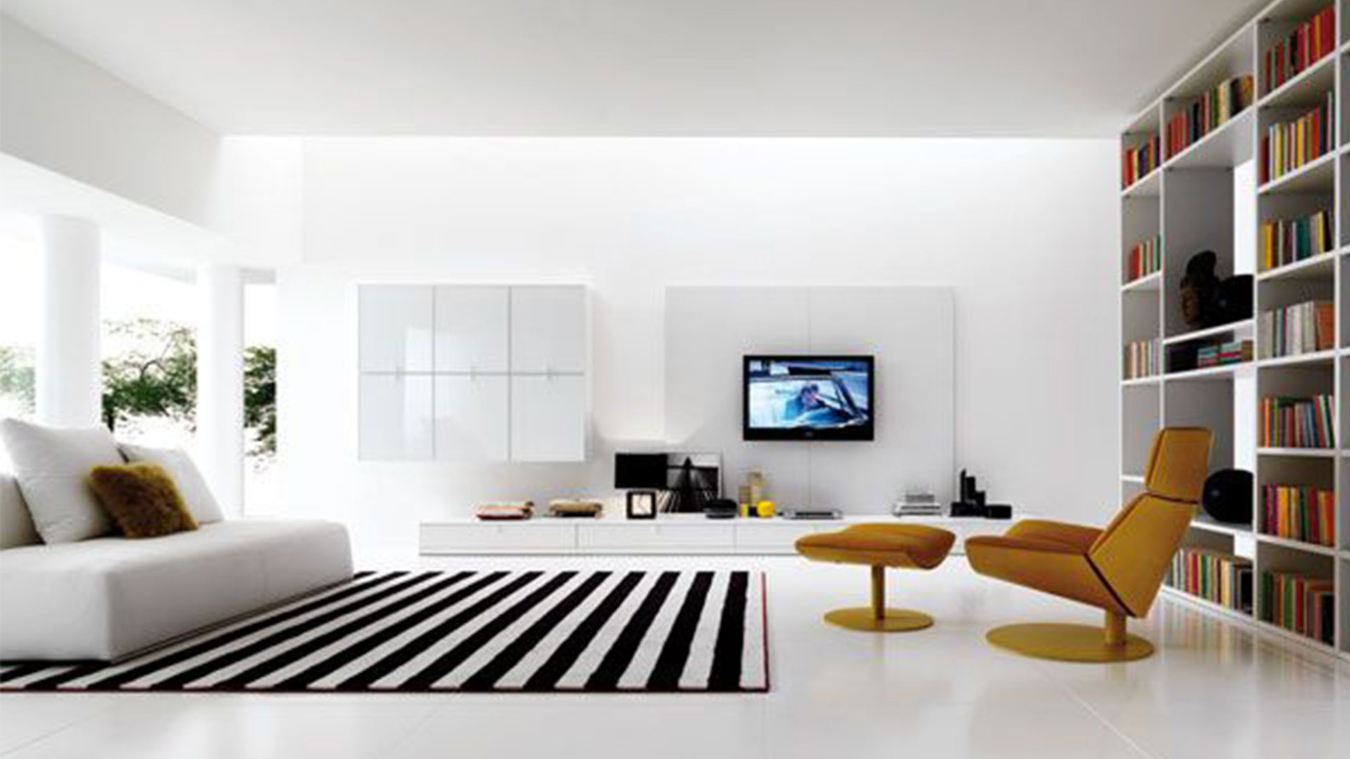 - Телевизор, музыкальную систему и другую технику можно удачно вписать в меблировку, чтобы техника не слишком выделялась и не нарушала дизайнерскую концепцию.