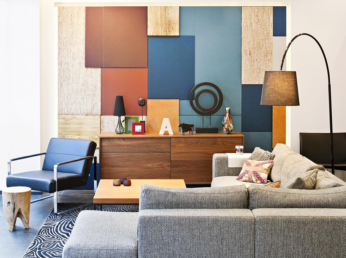 Раньше в моде были гарнитуры, теперь в тренде — сочетание разнообразных предметов. Это относится к материалу изготовления, форме, цвету. Например, рядом с диваном серого тона помещаются кресла контрастного тона и стилевой особенности. Например, одно кресло мягкое, а второе плетеное. Либо одно кресло вольтеровское, а второе — качалка.