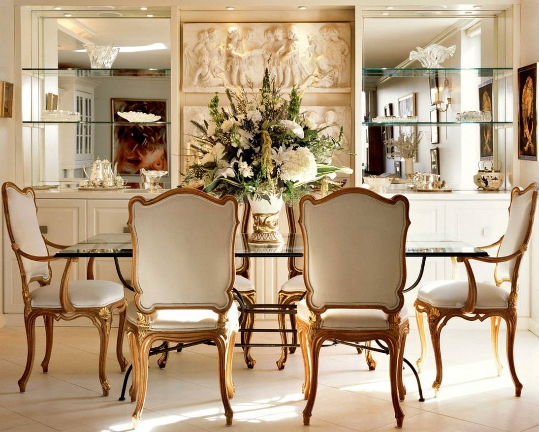 Для зала и гостиной в стиле барокко или рококо выбирайте крупные классические цветы и растения – розы, гладиолусы, пионы, вьющиеся зеленые или хвойные растения