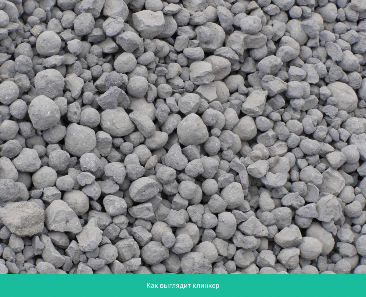 Основное, из чего делают цемент – это клинкер. Так называют продукт обжига исходного сырья – известняка и глины, которые берут в пропорции 3:1. Клинкер – это полуфабрикат для получения цемента. После обжига при температуре до 1500 °C клинкер измельчают, в результате чего он оказывается представлен в форме гранул диаметром до 60 мм.
