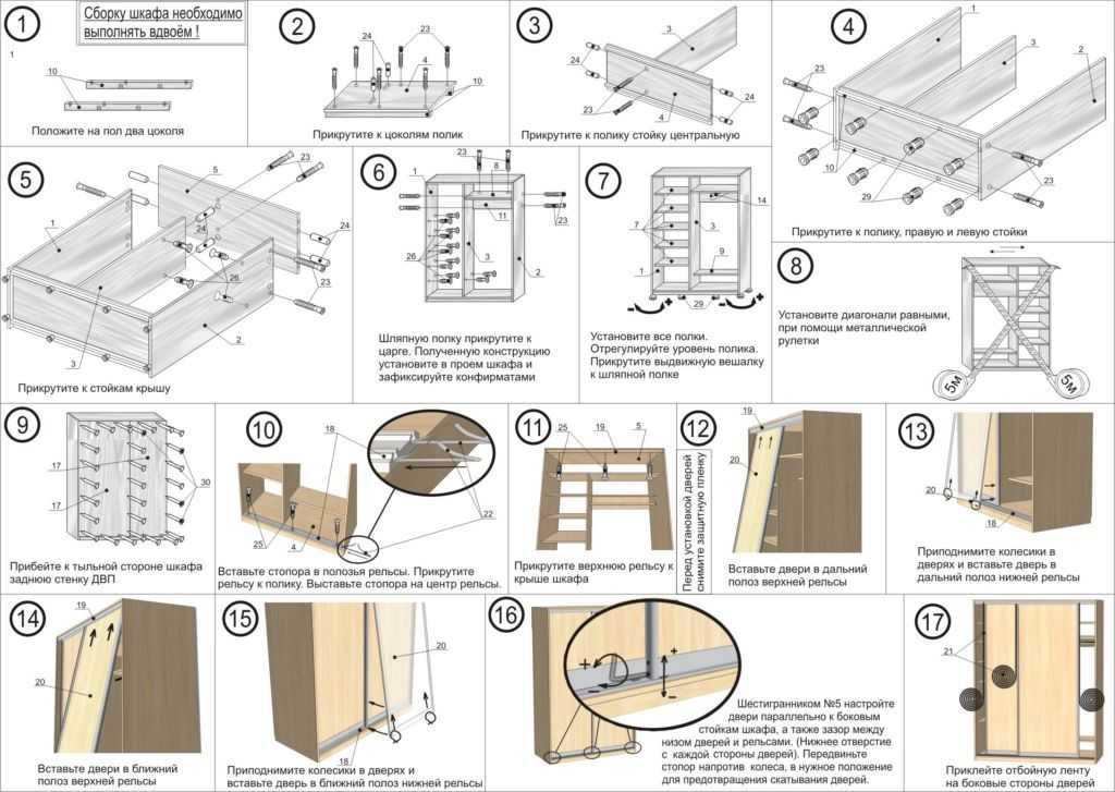 Для сборки приобретённого шкафа необходимо соблюдать инструкцию, приложенную к изделию поставщиком.