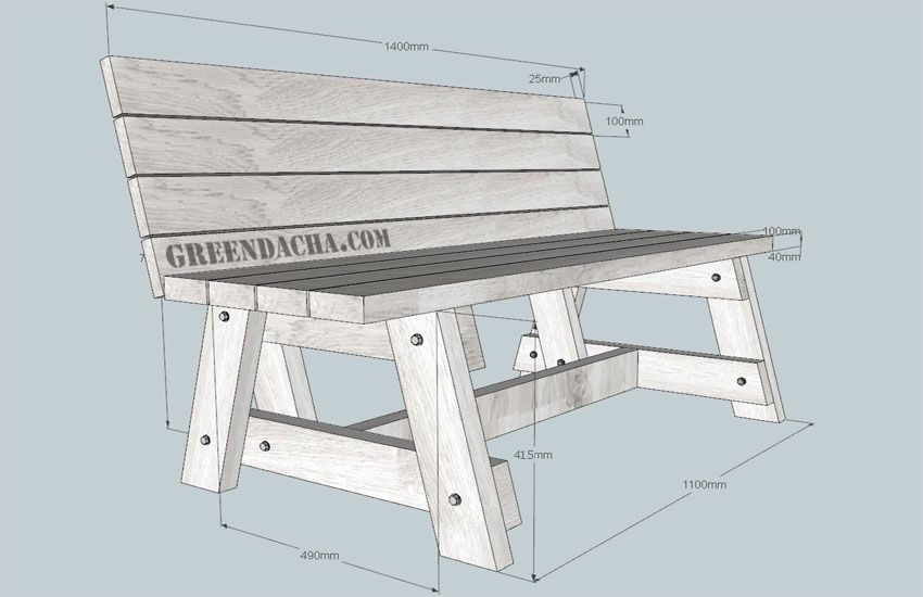 Стандартные конфигурации и размеры строительных элементов помогают создать правильные геометрические формы и надежно скрепить детали. Для таких вариантов лавочек предварительно делают чертеж будущей конструкции: