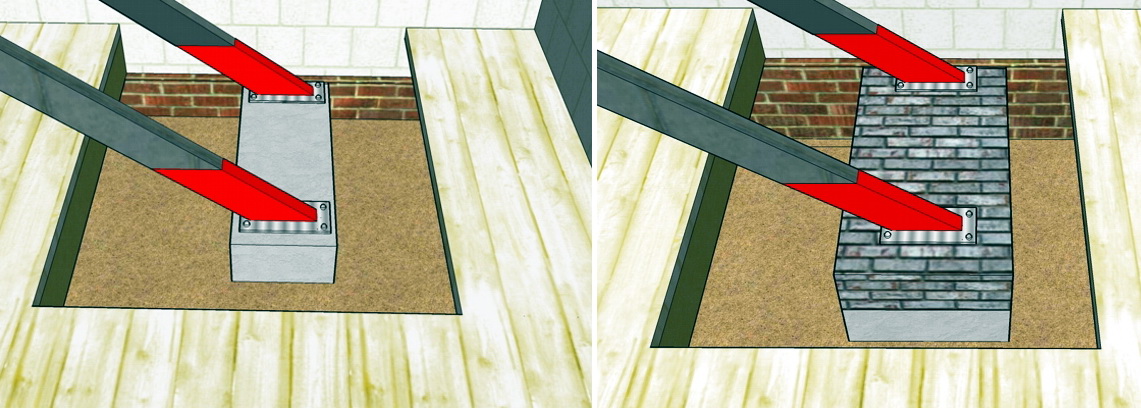 Технология устройства обоих вариантов фундамента под лестницу идентична технологии устройства столбчатого фундамента.