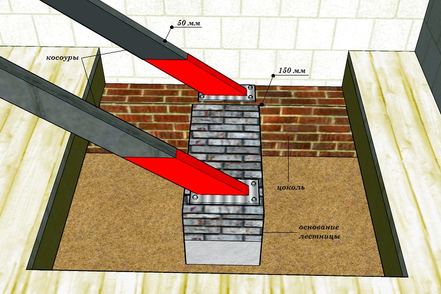 Крепление лестничного марша к бетонному и кирпичному фундаменту