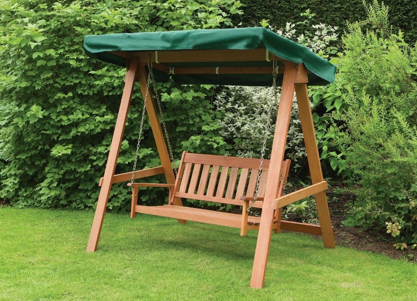 Деревянные качели создают теплую и уютную атмосферу, но при этом требуют более тщательного ухода