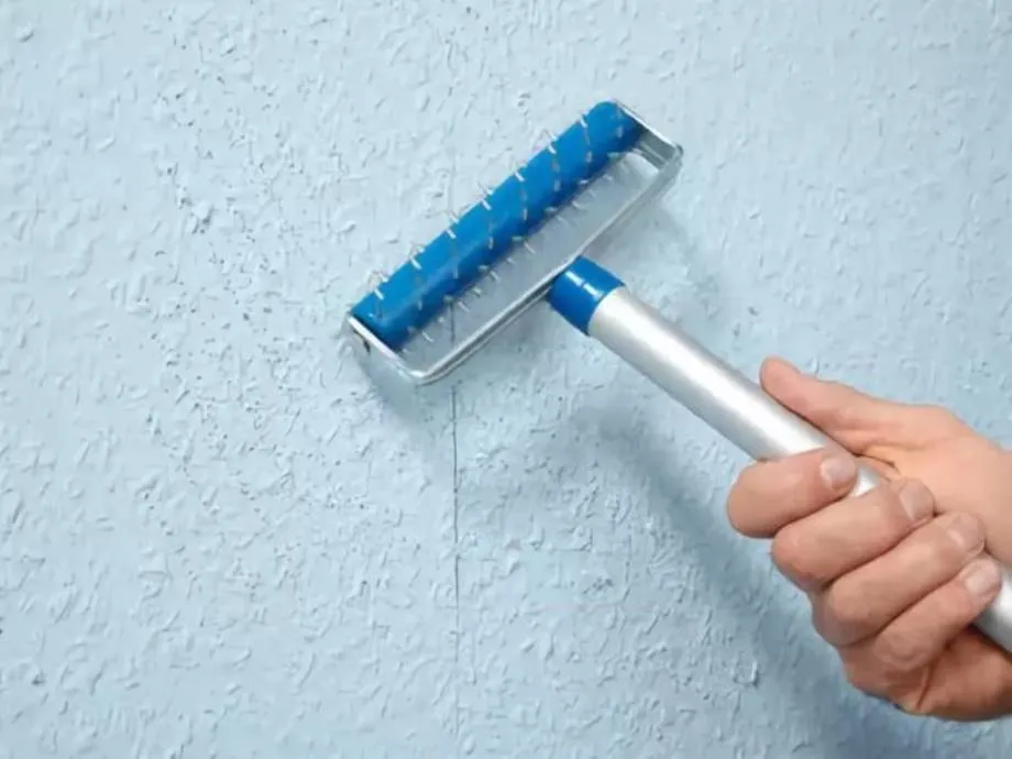 - Игольчатый валик. Необходимо найти инструмент с металлическими шипами и прокатать им стену. Это наиболее удобный и быстрый способ обработки, цена валика невелика, а найти его можно в любом крупном строительном магазине;