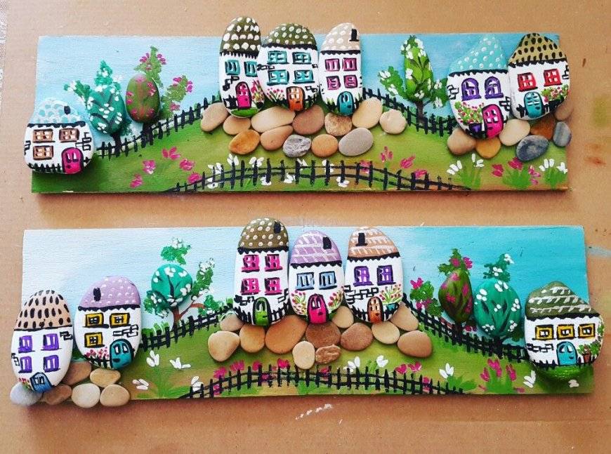 Если правильно подобраны морские и речные камни, то можно выполнить настоящую картину. В этом случае все будет зависеть от мастерства и фантазии выполняющего поделку.