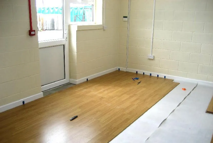 - Замеряется ширина помещения с учетом компенсационного зазора между настилом и стеной, который должен составлять около 1 сантиметра. Это позволит создать плавающее напольное покрытие без риска, что оно будет деформировано при повышении температуры и расширении панелей. Если площадь помещения превышает 12 квадратных метров, то толщина компенсационного зазора должна увеличиваться по следующей схеме: 1,5 миллиметра на каждый метр длины комнаты.