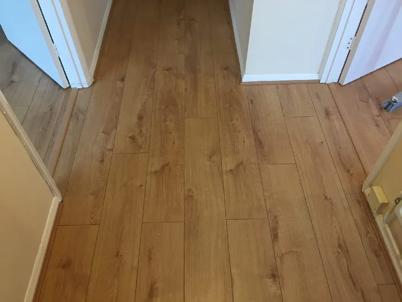Смонтированный ламинат в узком помещении по ходу перемещения людейИсточник manrule.ru