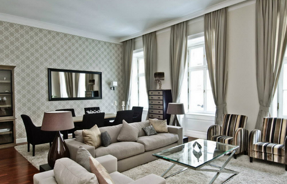 Какие существуют варианты комбинирования обоев в зальной комнате