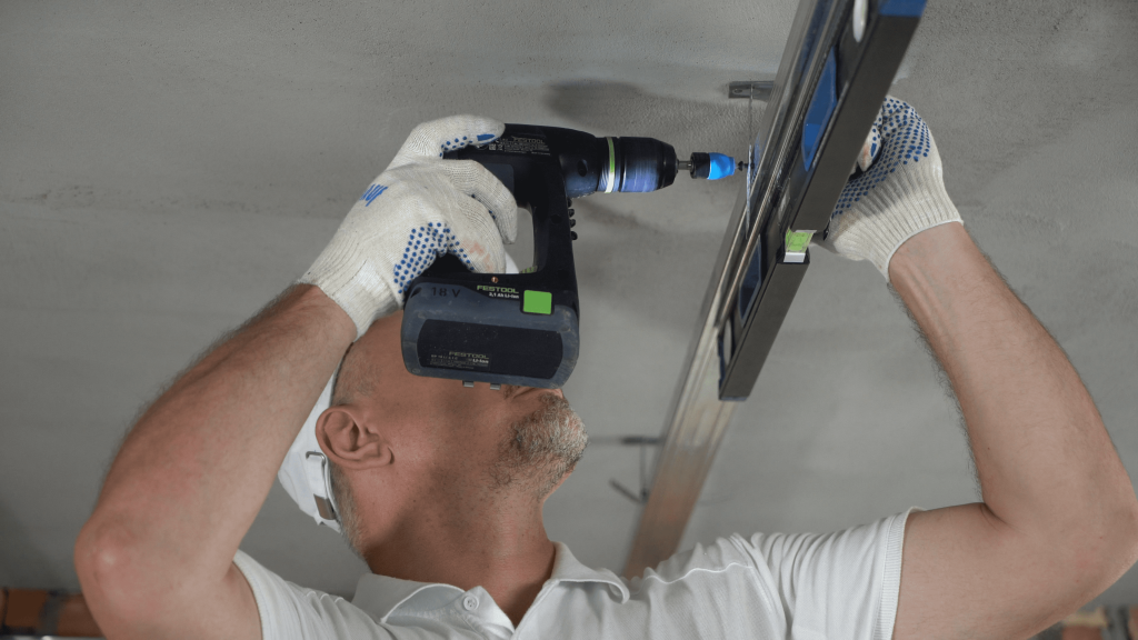 Приступайте к монтажу каркаса для первого уровня потолочной конструкции.