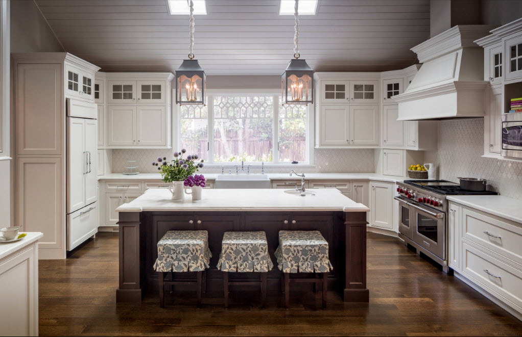 Особенно интересно смотрится даже небольшой остров в деревенском или же классическом стиле. Не менее подходит для этого также и интерьер, выполненный в направлении прованс.