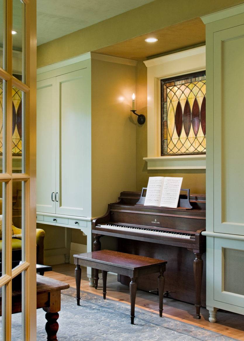 - Цветовая гамма и стиль перекликаются с общим интерьером.