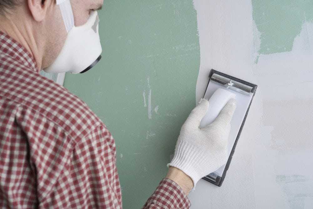 После устранения дефектов приступают к обработке стен наждачной бумагой, при этом не нужно пытаться полностью счистить краску – важно добиться шероховатости. После обработки наждачкой поверхность очищают от пыли с помощью веника или пылесоса
