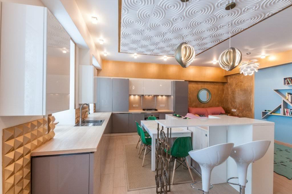 Необязательно отделывать всю поверхность потолка плиткой: довольно популярным решением стала отделка только части потолка с помощью данного материала