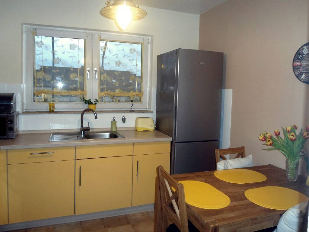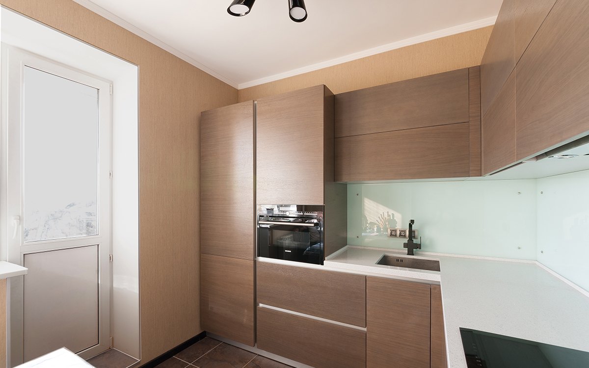 Желательно чтобы это было к ближайшей стене. Кроме того дверца должна открываться полностью, иначе шкафчики просто невозможно будет открыть.