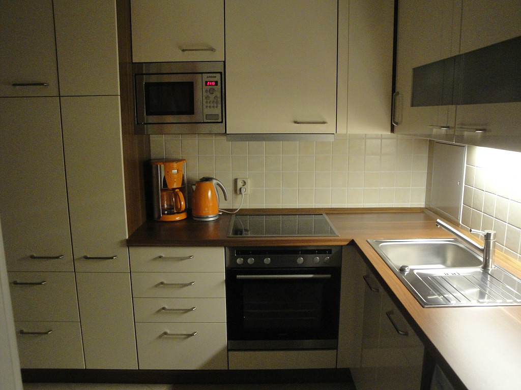 Стиральную и посудомоечную машины тоже достаточно часто устанавливают на кухне. По правилам расположения не рекомендуется их ставить рядом с плитой, поскольку, несмотря на наличие защитного термоизоляционного слоя, нагрев все равно может негативно действовать на работу прибора.