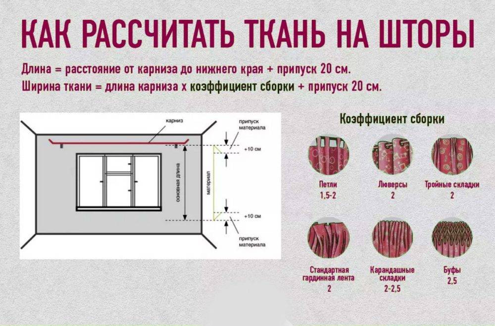 Сколько ткани нужно на шторы. Расчёт расхода ткани для штор