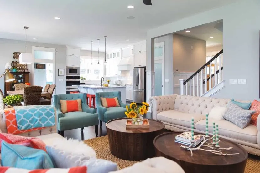 Круговая расстановка мебели может хорошо смотреться как в больших, так и в маленьких комнатах, но она съедает пространство, поскольку иногда требуется выдержать большие расстояния между центром и мебелью. Если комната маленькая, лучше придерживаться минимализма в обстановке. Пусть мебели будет немного, но она будет уютная и хорошо расставленная