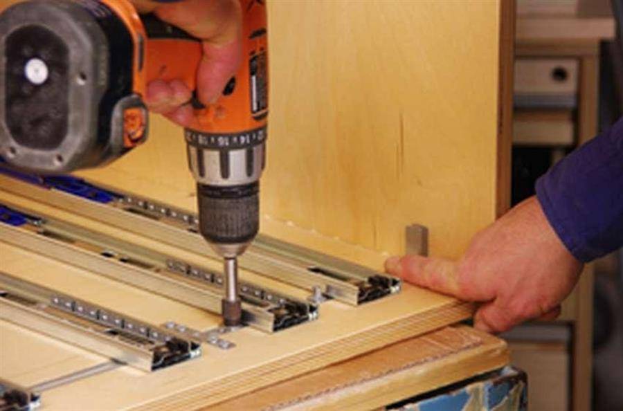 В сборке самого короба ничего сложного нет. Наибольшего внимания требует устройство выдвижного ящика. Предполагается, что он будет нагружен, поэтому в случае неправильного положения он может заедать при движении и выскальзывать из креплений.