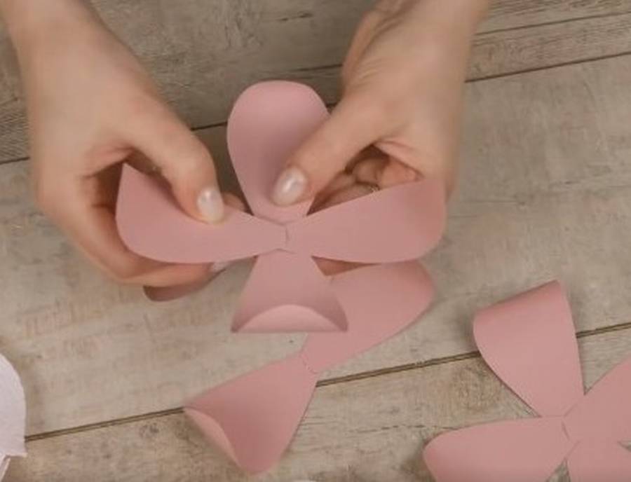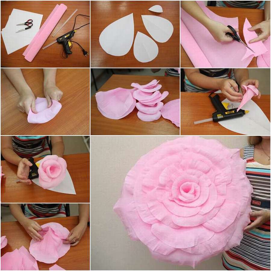 Далее представлено изготовление больших цветов из бумаги пошагово: