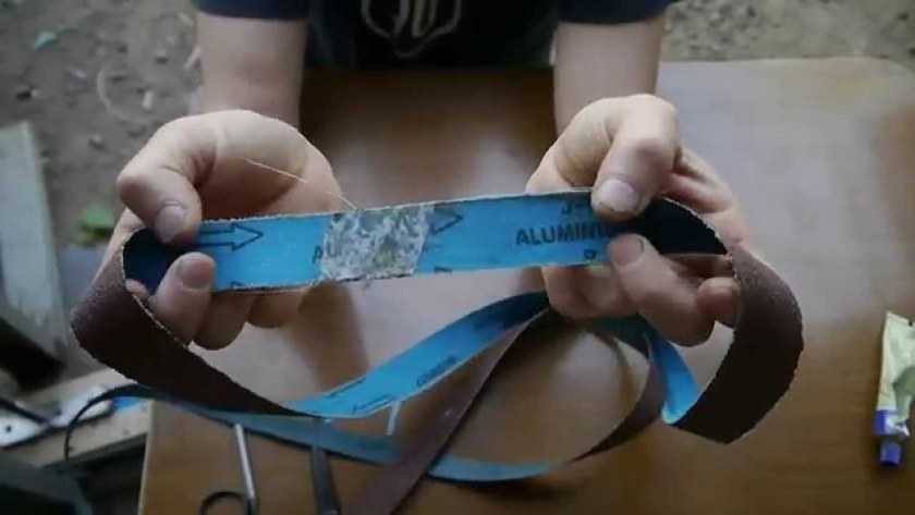 Современные производители абразивных материалов рекомендуют готовые к применению ленты. Они бывают в рулоне заданной величины или склеенные в кольцо. В большинстве случаев появляется потребность делать абразивную ленту для гриндера под четко установленные размеры. Это выполняться путём приклеивания полосы под определенный размер. Для решения данной задачи понадобятся такие материалы: