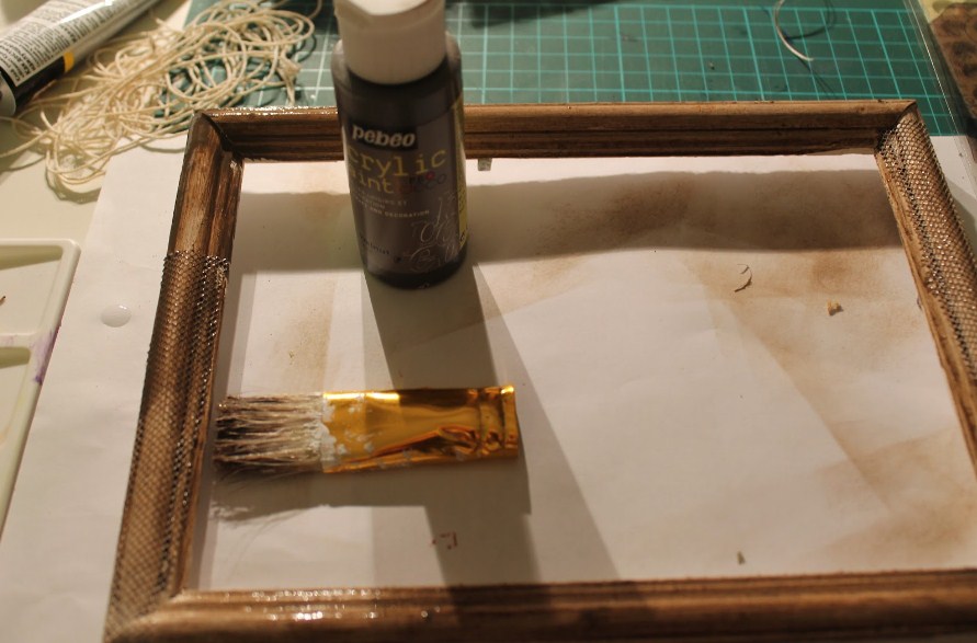 С помощью малярной тонкой кисти красим рамку два раза, каждый раз давая ей хорошо просохнуть.