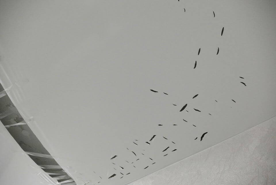 Справляемся с порезами. Тканевый потолок можно просто зашить подходящими по цвету капроновыми нитками. Большой разрыв или порез легко скрывается под тканевым скотчем. Заплатки же после ремонта можно спрятать под слоем водоэмульсионной краски. Наносить ее следует при помощи краскопульта.
