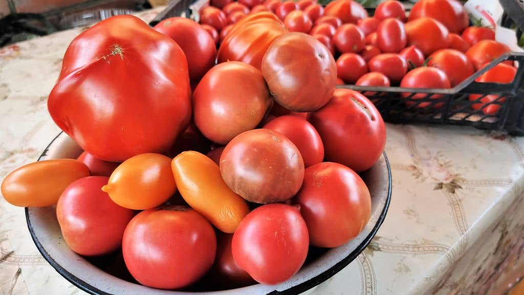 Через 2-3 дня томаты, находящиеся рядом с ним, тоже краснеют. Дело в том, что зрелый овощ выделяет этилен, который способствует покраснению другого плода.