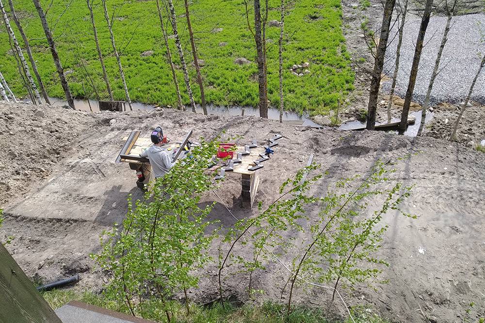 Установили ступени. Мы купили в «Петровиче» 14 клееных ступеней из сосны шириной 1200 мм. Они обошлись мне в 14 000 Р.