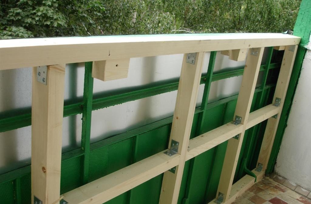 Через каждые 2,5 м нужно крепить по 2 бруска подряд. Это необходимо для последующего крепления на них гипсокартона. После фиксации всех поперечных брусков можно переходить к боковым стенам балкона.