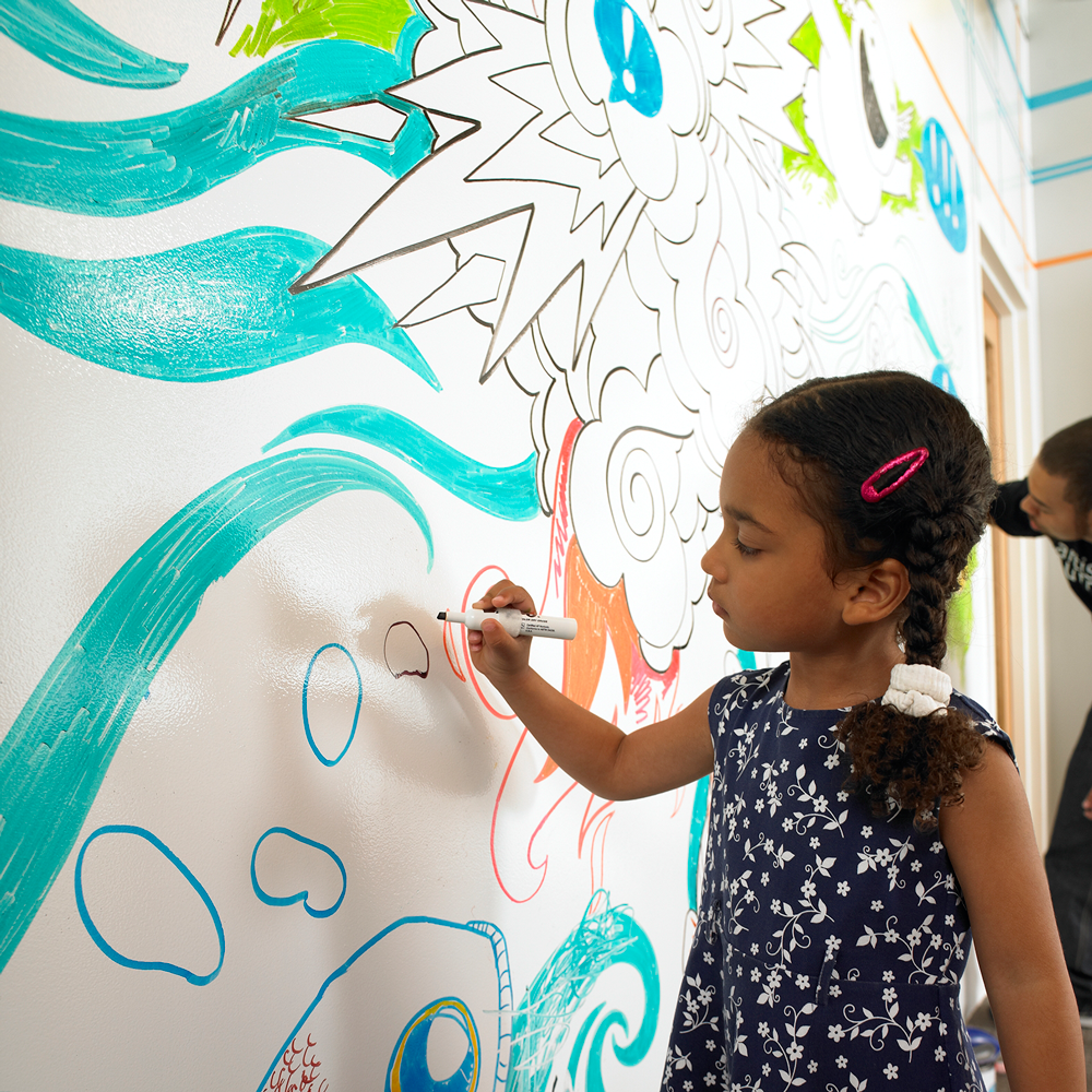 Чтобы обезопасить стены вашего ремонта от детских рисунков, нанесите на одну из стен маркерное покрытие